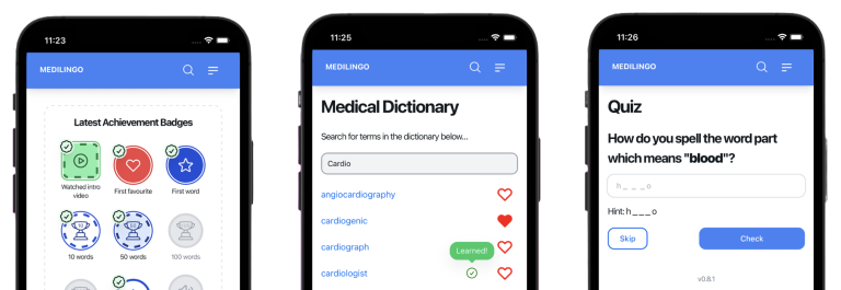 The MediLingo app is currently available on the Google Play store for Android devices and as a mobile-optimised web app for iPhones and iPads (iOS). App Store availability coming soon! For iOS, access the web app (installable as a progressive web app)
